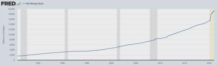 自2019年9月以来,美国美联储已经印刷了约9万亿美元。而且目前流通的美元中大概有20%都是在2020年印制的!