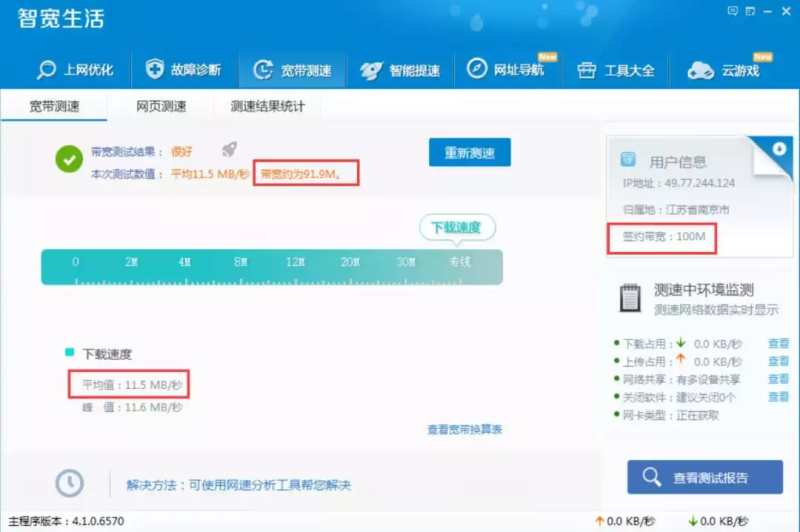 今天和大家一起测试一下,看自己使用的带宽,是否可以达到开通的带宽速度呢?