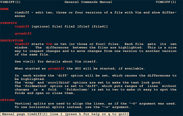 相比diff实用工具,Vimdiff采用了一种高级的工作方式。它让用户在显示文件差异时,最多可以编辑一个文件的四个版本。你在运行Vimdiff时,它会使用vim文件编辑器,打开两到四个文件。