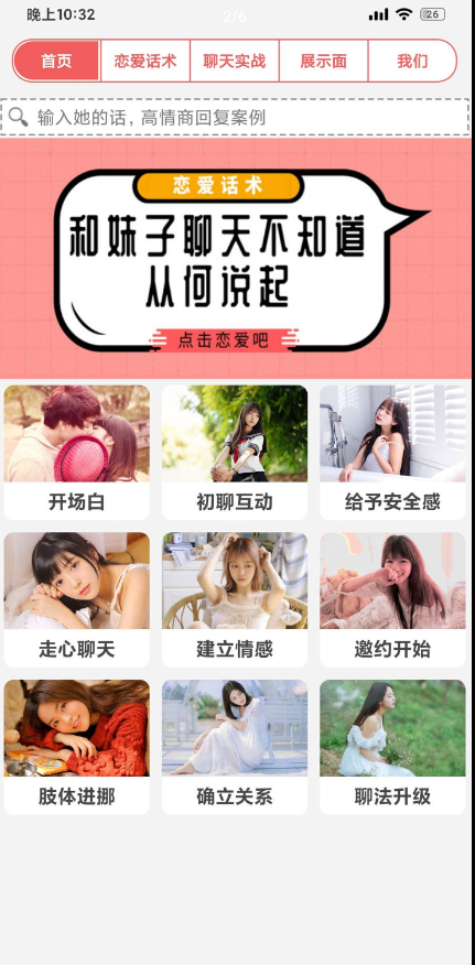 软件介绍:教您谈恋爱,秒追到女孩!海量恋爱话术教你轻松学会聊天,让你快速脱单,追到自己心仪的对象!搜一搜,多种场景,全方位内容,等你发现!(有启动广告,登录即解锁所有会员功能)