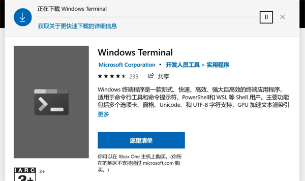 在搜索框里搜索Windows Terminal,即可找到这个软件。比较人性化的一点是,它不像Mac的应用商店一样,需要你先准备一个账号。WT不需要登录即可获取。