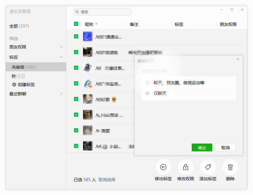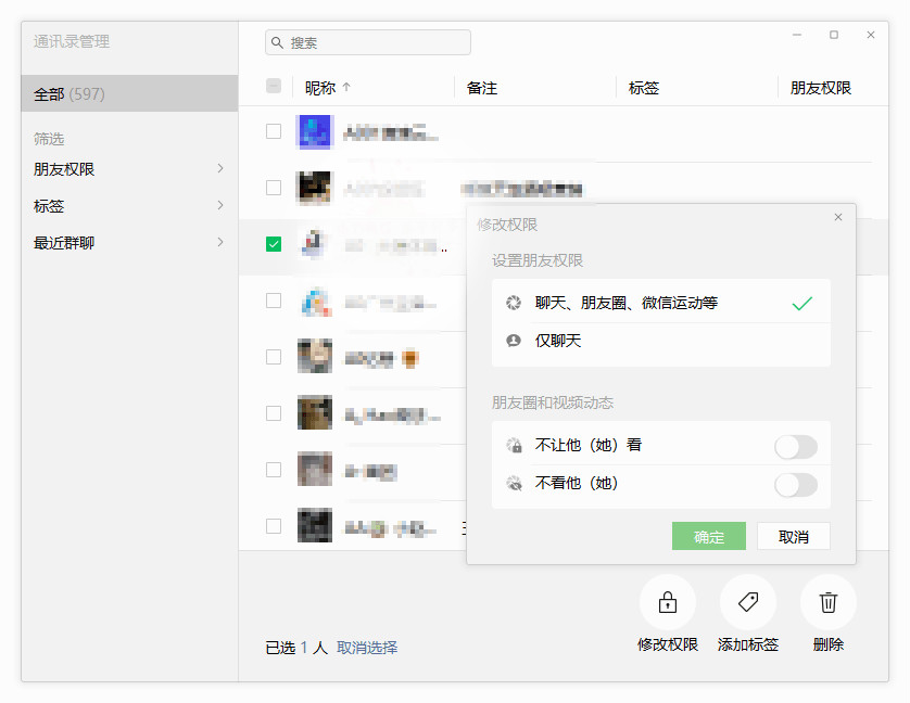 此外,还能批量勾选好友进行批量的修改操作,相比原旧版本需要一个一个手动修改来说,