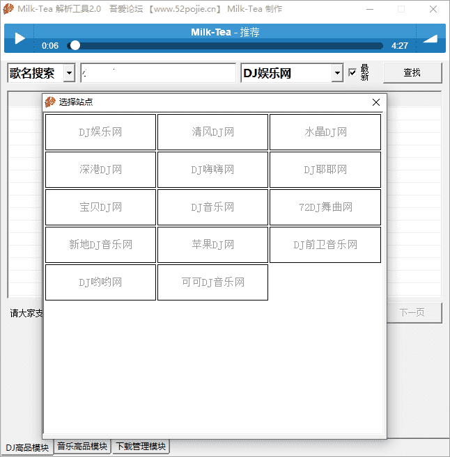 ![图片[2]-Milk-Tea解析工具v2.0 全网DJ&音乐无损下载-玩转网](https://www.902d.com/wp-content/uploads/2020/10/17f1cba9790c.png)
