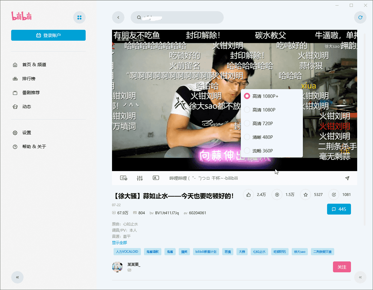在B站上面,普通账号是不可以观看1080P+和4K画质的,这个应用主要就是视频画质功能,免登录免费体验各种画质,会员视频依然需要大会员!
