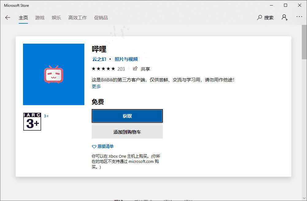 仅限windows10系统才可以安装此应用,打开下面的链接,点击获取,会有一个外部请求,启动应用即可,然后在win10应用商店中,点击获取开始下载。