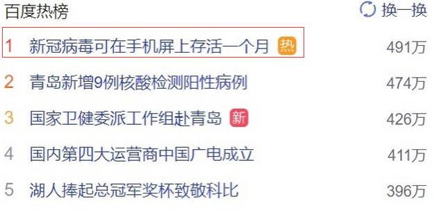 近期有媒体报道,澳大利亚疾病预防中心的科学家表示:“新冠病毒可在钱币、玻璃表面存活近一个月”。时下同样正是流感的高发期,加之冬季天气干燥,本身就不利于病毒的杀灭,此消息一出,瞬间上了百度搜索热榜首位。