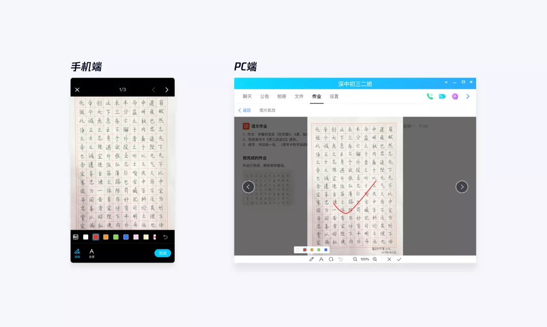 由于线上作业可随时提交,并且在家办公与日常使用手机的特殊背景,老师的批改作业时间将会被碎片化,增加老师们的批改负担。使用手机或电脑批改作业,无论是翻阅还是涂改都远不如纸面灵活,这是老师们线上批改作业最大的痛点。