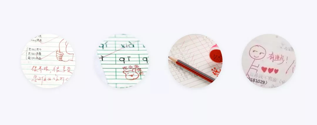 现实中一些有爱的老师,除了打分还会手画小表情或者盖印章示鼓励,我们将这种线下传统结合到QQ的作业打分设计上。