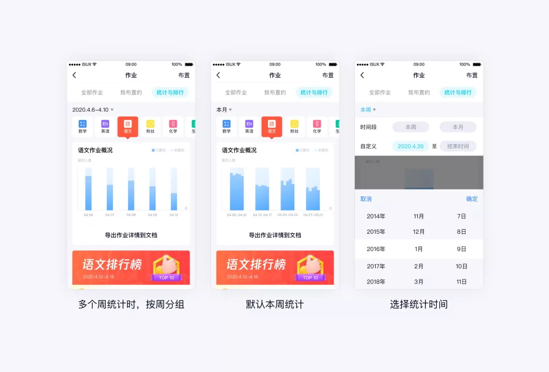 根据访谈,每周一升旗礼后通常是班会,班主任会回顾班内上一周的情况。QQ以每周作为默认统计周期,贴近班主任一周回顾的习惯。
