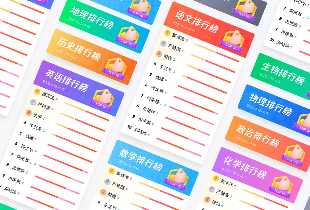 统计学生一周内作业得分的排行榜,向老师展示学生作业排名及变化情况,排行榜可酌情分享到班级群里,增加老师鼓励学生的机会。