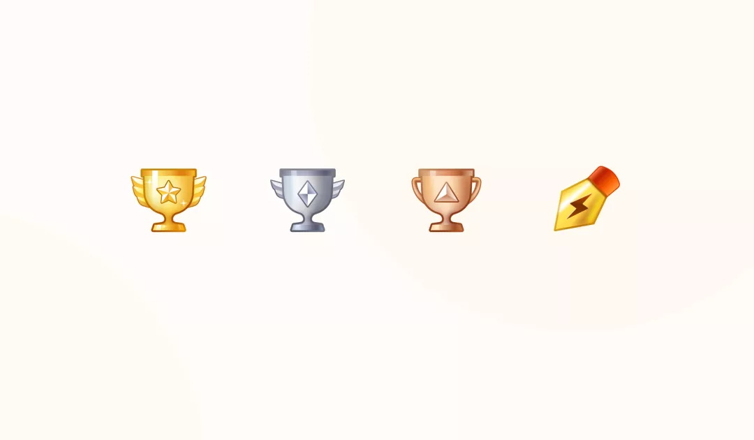 互动标识目前有两种,一种是一周内获得模范作业超过3次成为初级模范,连续两周获得模范作业超过3次成为中级模范,连续三周获得模范作业超过3次成为高级模范,视觉展示备选元素有奖杯、奖牌、星星、小红花等;另外一种是每项作业提交时间较早的3名同学会被授予标识,备选元素有旋风、闪电、火箭、铃铛。同时也调研了一些家校群里的老师和学生,大家比较认可和喜欢是奖杯和闪电的元素,在此基础上,我们进行了视觉优化优秀作业标识用奖杯金银铜的质感来表示3个等级,交作业最快用钢笔头+闪电组合的方式来展示。