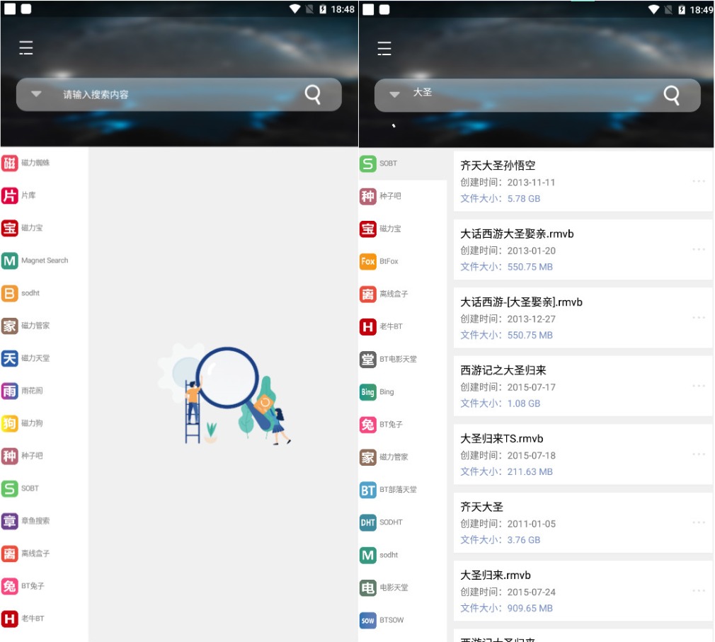 So磁力手机版是一款非常强大的磁力搜索神器,拥有多引擎搜索,多个引擎同时搜索,您想要的全都有,具有灵活点播的功能,随点随看,时间自由掌握,快来下载体验吧!