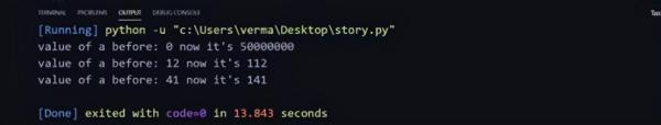输出-1中首先能得到t2和t3进程的结果,然后在输出-2的截图中得到了t1进程的结果,这是异步编程的功劳。t1进程耗时最长,所以它的结果最后产生,且t1、t2和t3进程均并行运行。异步编程的好处就在于不必等待任何进程的结果,便可获得下一个进程的结果。