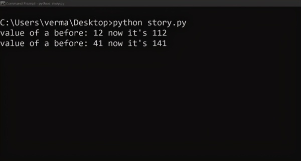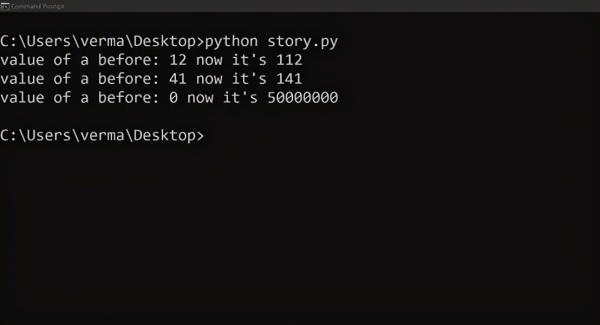 - print(“value of a before: “+str(b)+” now it’s “+str(a))