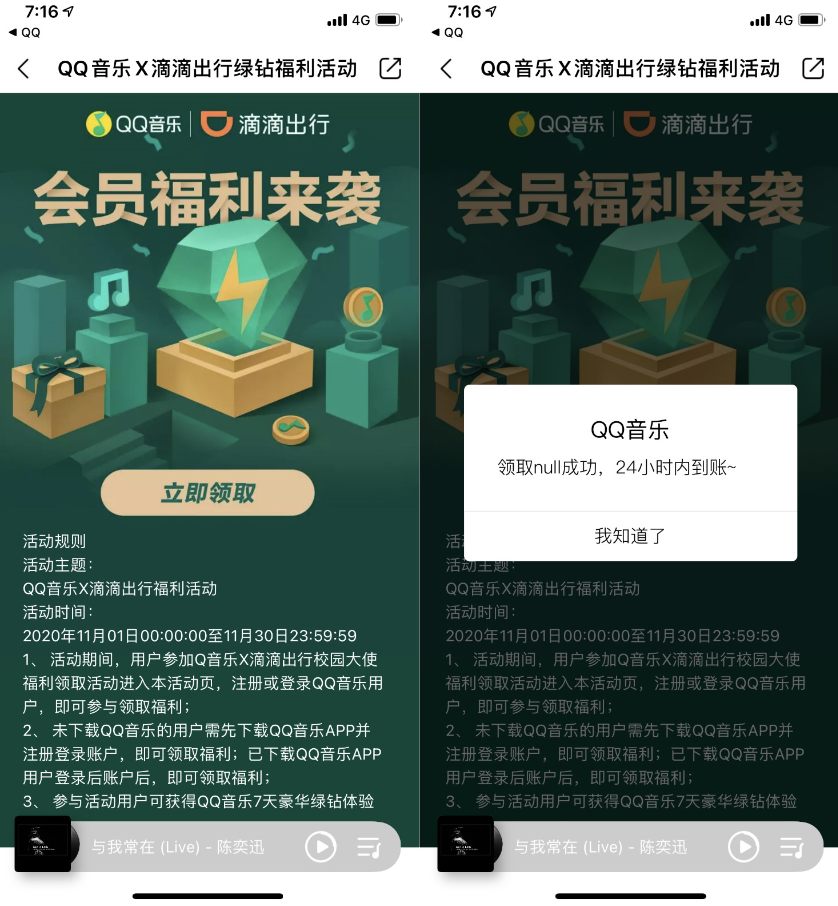 参与活动用户可获得QQ音乐7天豪华绿钻体验,未下载QQ音乐的用户需先下载QQ音乐APP并注册登录账户,即可领取福利;已下载QQ音乐APP用户扫码登录后账户后,即可领取福利!