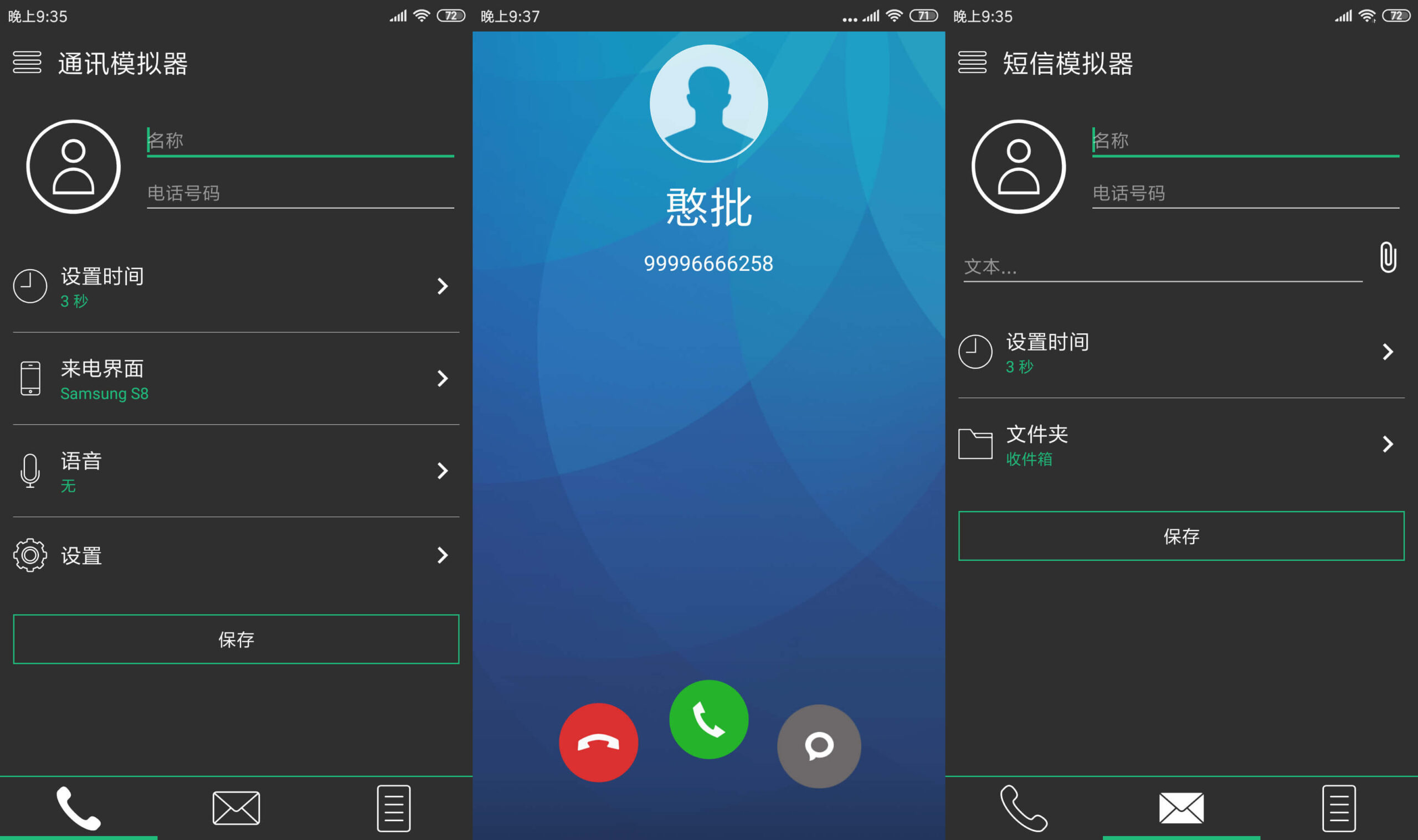 这是一款模拟手机来电,短信等功能的手机通话消息APP,可模拟电话来电、
