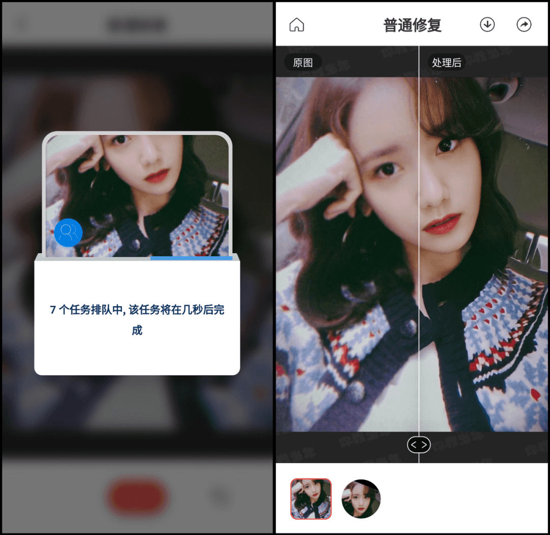 上传我们需要修复的照片,此时会提示我们正在排队,生成后可以通过滑动进度条进行查看。