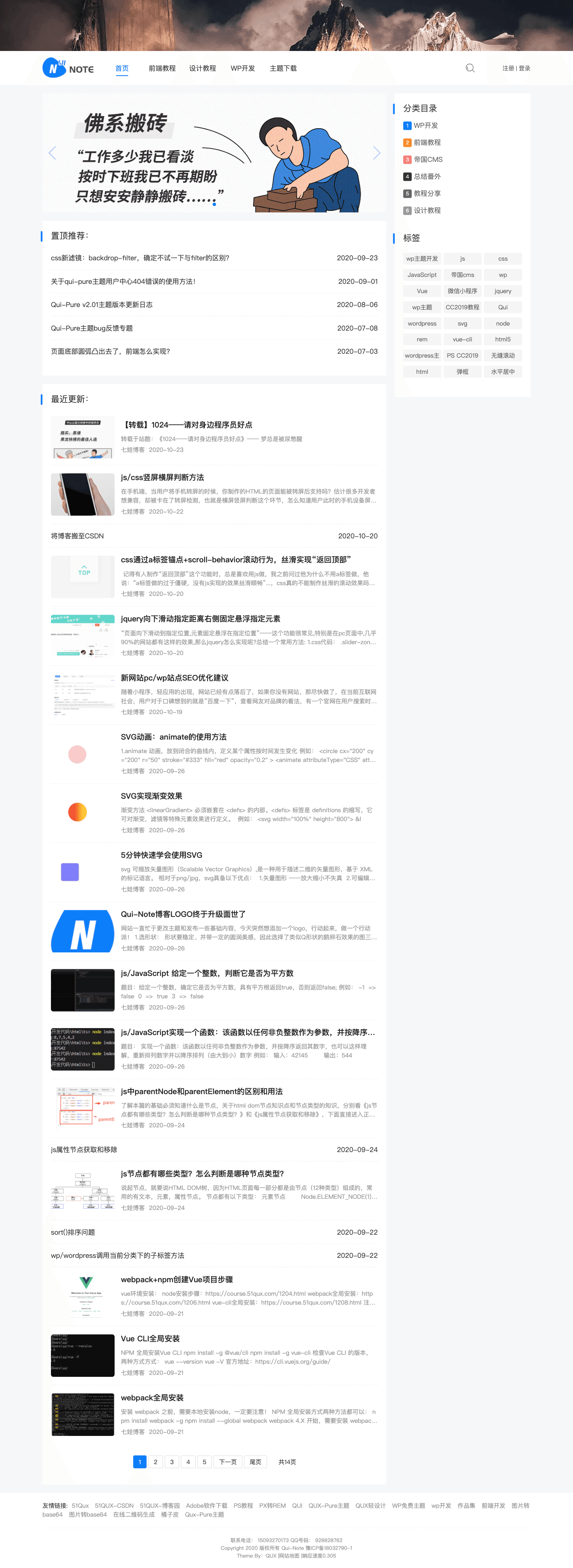Qui-Pure是QUX轻设计/七娃博客开发的第一款主题:纯文本展示博客类型,主旨:简约至上
