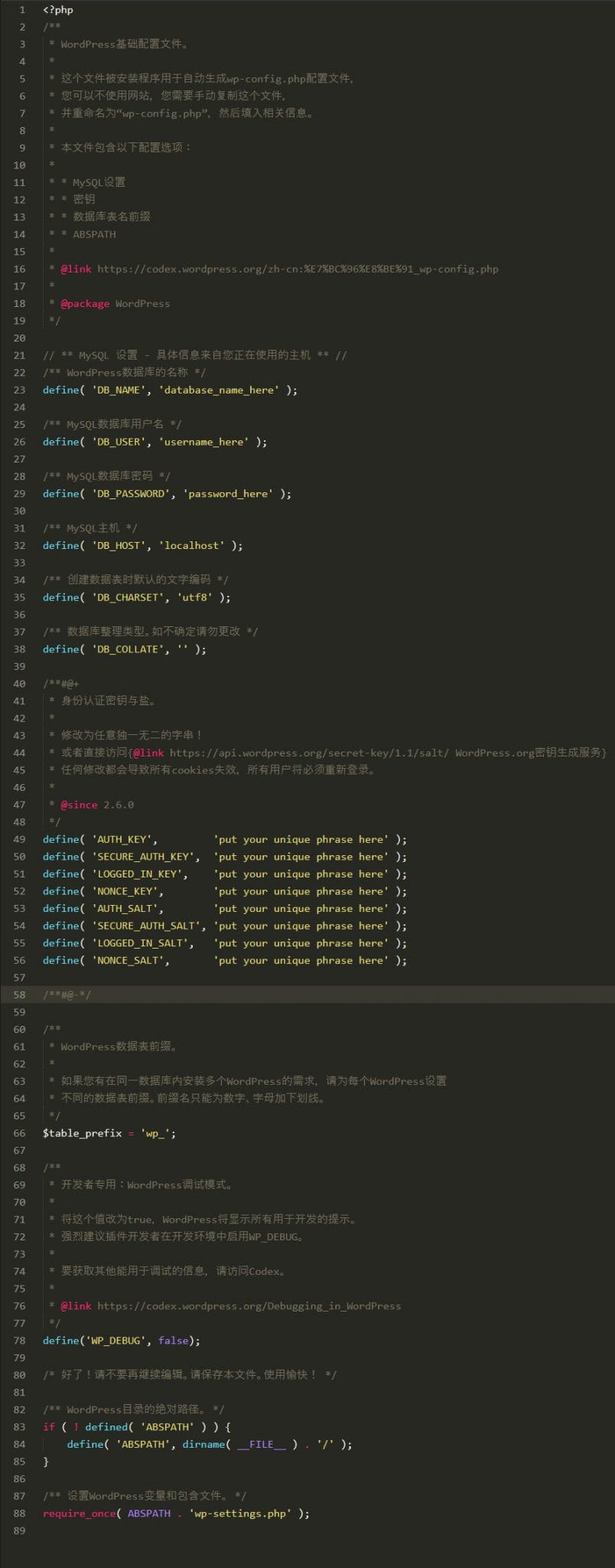WP-config.php文件为你的WordPress网站基本配置的详细信息。