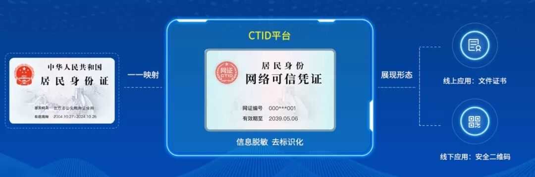CTID 以公民身份号码为信任根,和实体身份证信息一一映射,在公民需要认证身份时,可替代实体身份证使用。它由公安部第一研究所可信身份认证平台认证,可为各行业提供权威、可信、安全、便捷的认证服务。