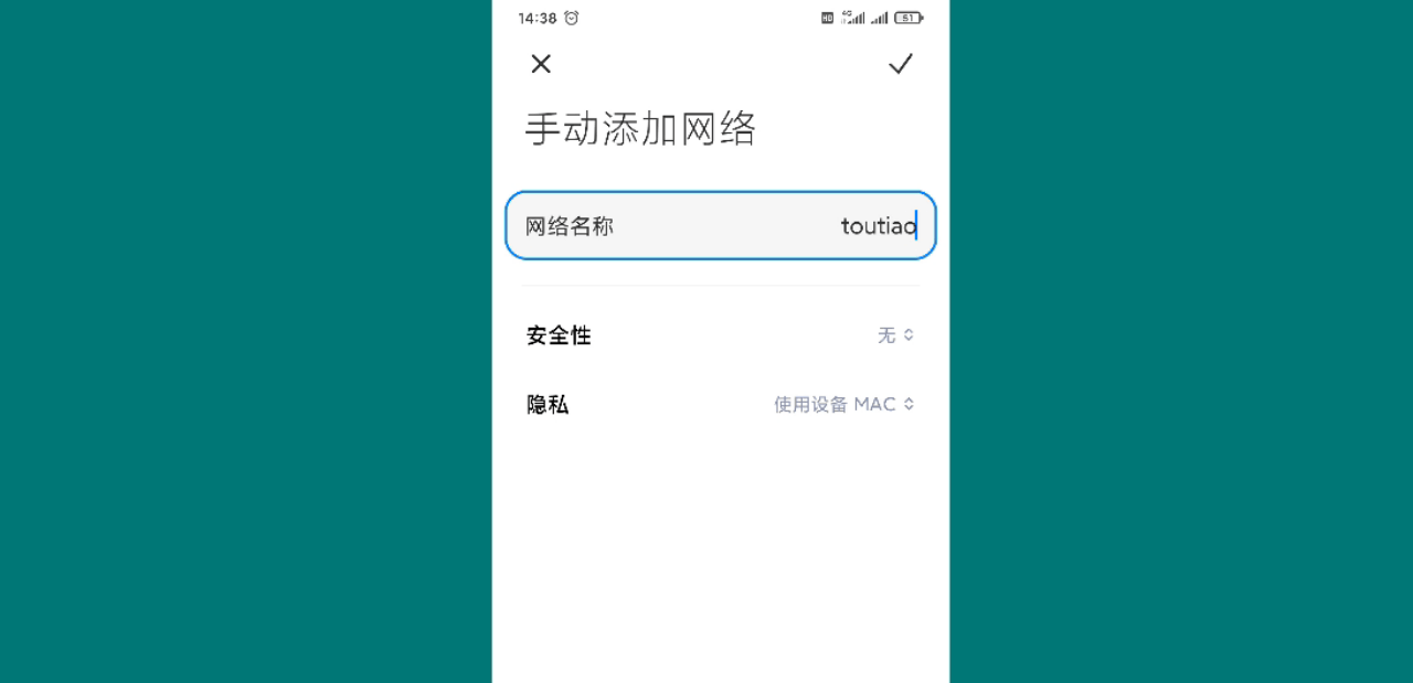 6、手机上面添加无线wifi网络,首先找到WLAN,默认是搜索不到我们的toutiao网络的,点击手动添加网络,网络昵称:toutiao 直接勾选,然后我们的toutiao就显示在WLAN中呢,输入密码就可以连接上去了啦。