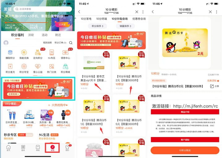 可10积分兑换Q币、爱奇艺会员等!按照说明兑换即可。 可多次兑换卡的话多试试