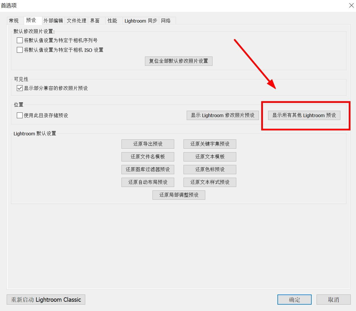 首先我们需要知道调色预设放在哪个文件夹,打开LR——编辑——首选项——预设——显示所有其他Lightroom预设——Lightroom——Develop Presets,这个文件夹是默认的预设文件夹,如图所示: