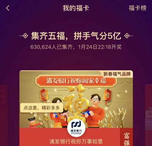 2.福卡的类型有爱国福/敬业福/和谐福/友善福/富强福,花花卡/沾福气卡/万能卡。