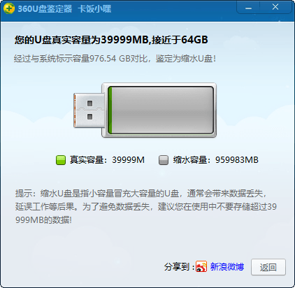 它是由小容量的U盘篡改而成,能够协助你发现缩水U盘,保障你的数据安全。