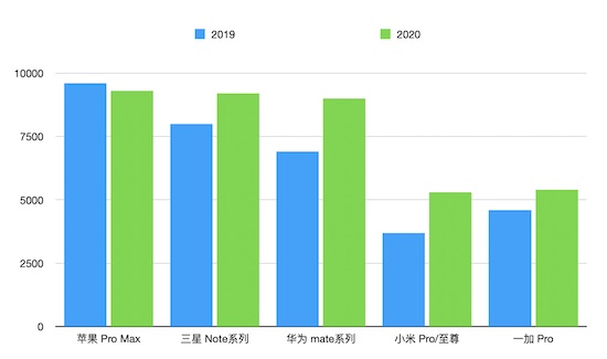 而经过对于 2019 与 2020 年的各厂商最高阶产品的起售价格对比不难发现,除了苹果 Pro Max 系列在价格上还有所下降外,其它品牌下的最顶级产品均有一定幅度的价格上涨,与此同时,除了一加外,这些品牌也采用了新的名称来诠释自家的新产品。
