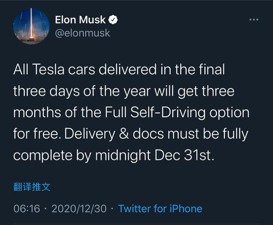 ![图片[2]-特斯拉年终惊喜,马斯克称最后三天为新用户送3个月免费 FSD-玩转网](https://www.902d.com/wp-content/uploads/2020/12/fecf2399a3d4.jpg)