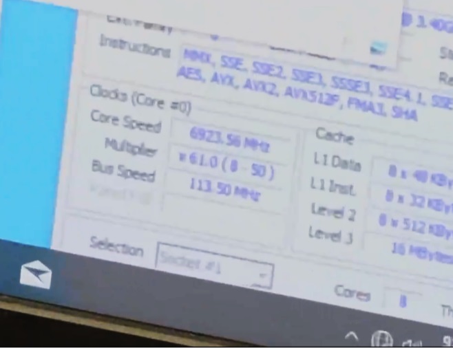 根据视频可以看出这款 CPU 使用技嘉主板进行超频测试,很有可能是采用英特尔 Z590 芯片组的型号。CPU-Z 信息显示,这款 CPU 为 8 核 16 线程设计,支持 AVX512F、SHA 指令集,这与此前有关于英特尔 11 代 CPU 的爆料信息相同。此外,这块 CPU 还有这 48KB L1 缓存、512KB L2 缓存、16MB 共享 L3 缓存,外媒表示几乎可以确定是英特尔 11 代 Rocket Lake-S 处理器。