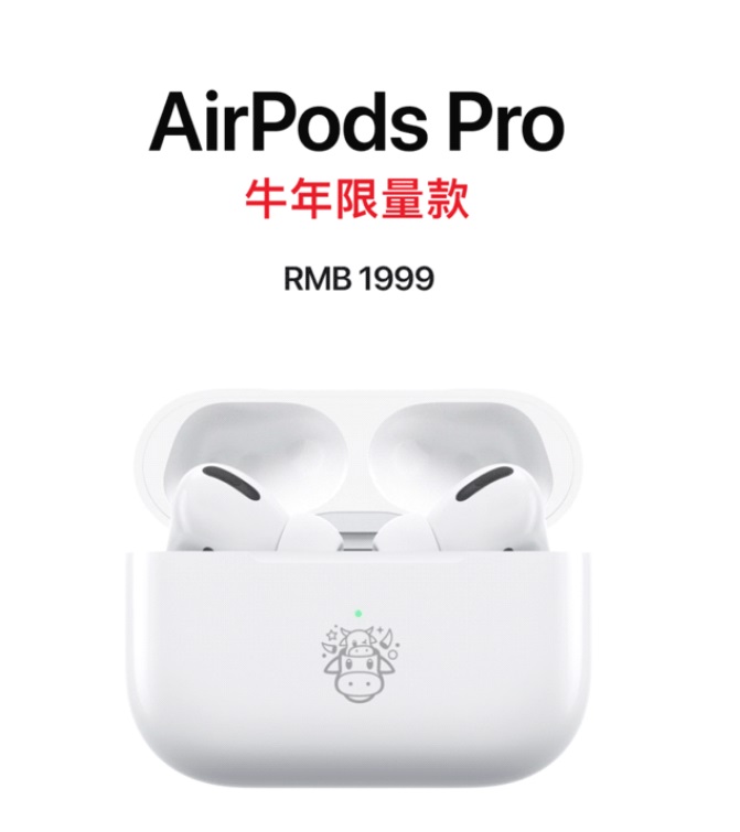 近期,苹果推出了「牛年限量款」AirPods Pro,据苹果介绍,这是特殊为中国用户准备的,而且限量 25400 副,其中 Apple Store 零售店 11480 副,Apple Store 在线商店 13920 副,每位顾客限购两副。
