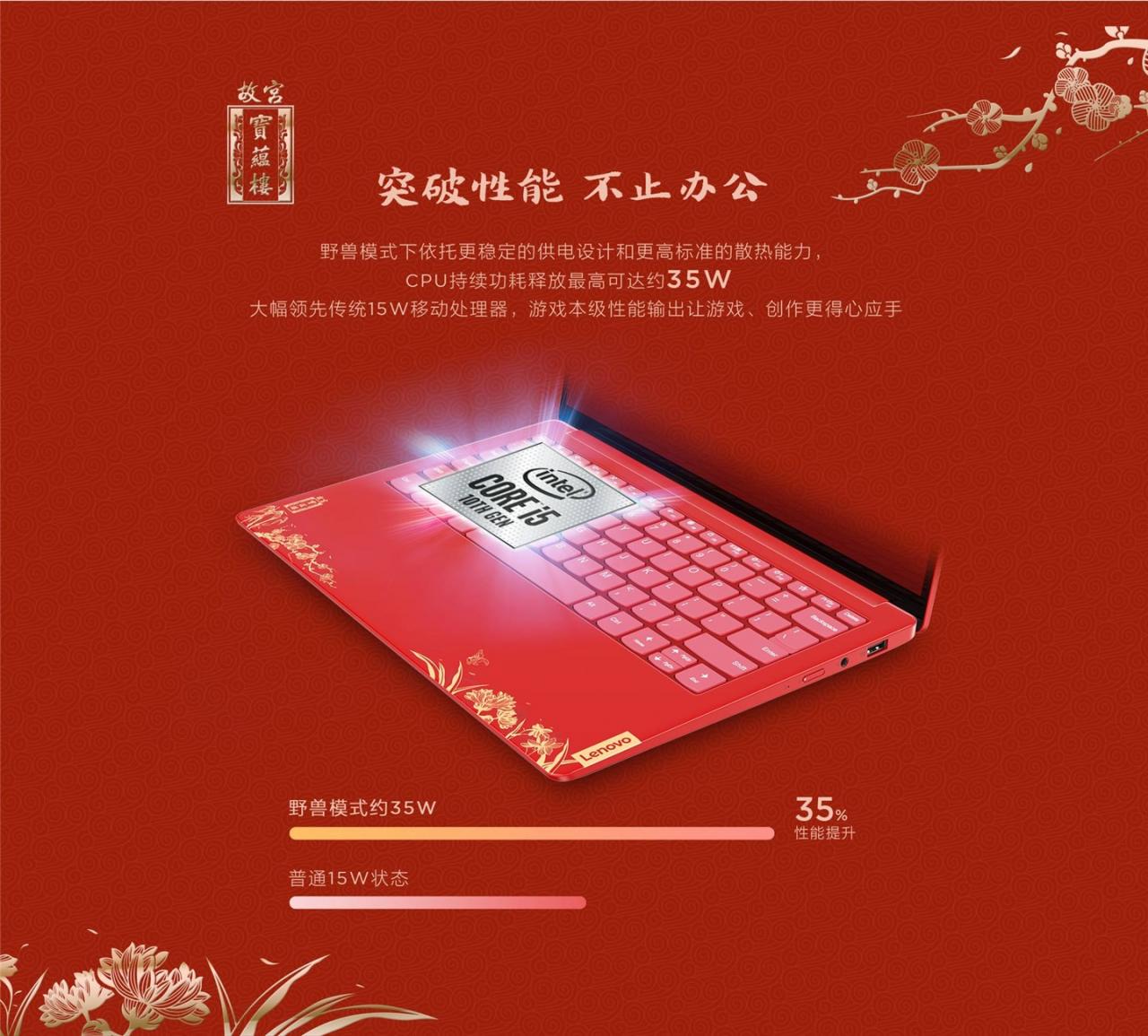 在笔记本中,联想对于新年款的理解应该是最深刻的,旗下的爆款机型小新 Pro 13 曾经推出过「故宫文创联名款」,发售时间在 2020 年新年前后,它通体采用了大红色金属机身,其上的图形设计灵感来自于故宫博物院藏品,从中提取了海水江崖纹和梅兰竹菊团花的图案。