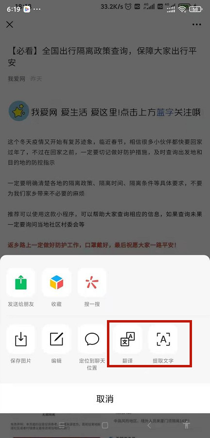 一、长按图片提取文字