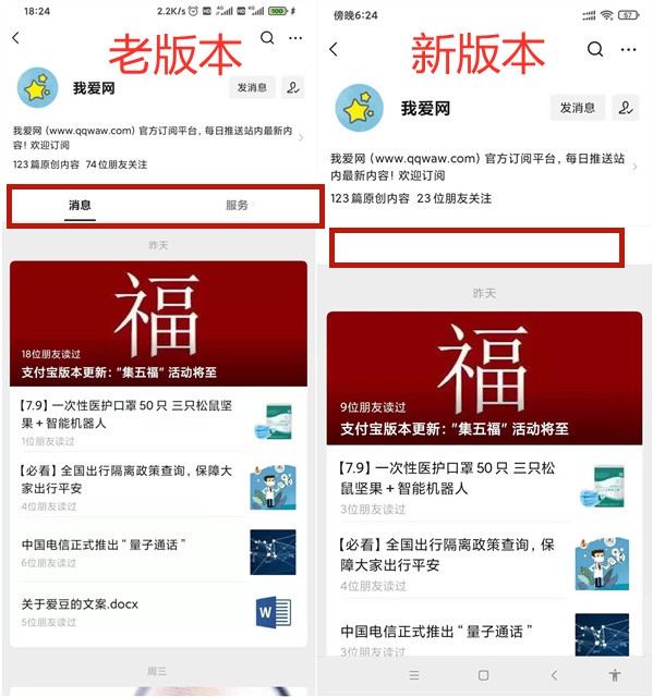三、公众号主页改版