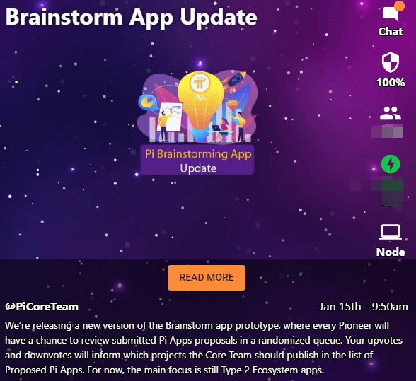 We’re releasing a new version of the Brainstorm app prototype, where every Pioneer will have a chance to review submitted Pi Apps proposals in a randomized queue. Your upvotes and downvotes will inform which projects the Core Team should publish in the list of Proposed Pi Apps. For now, the main focus is still Type 2 Ecosystem apps.