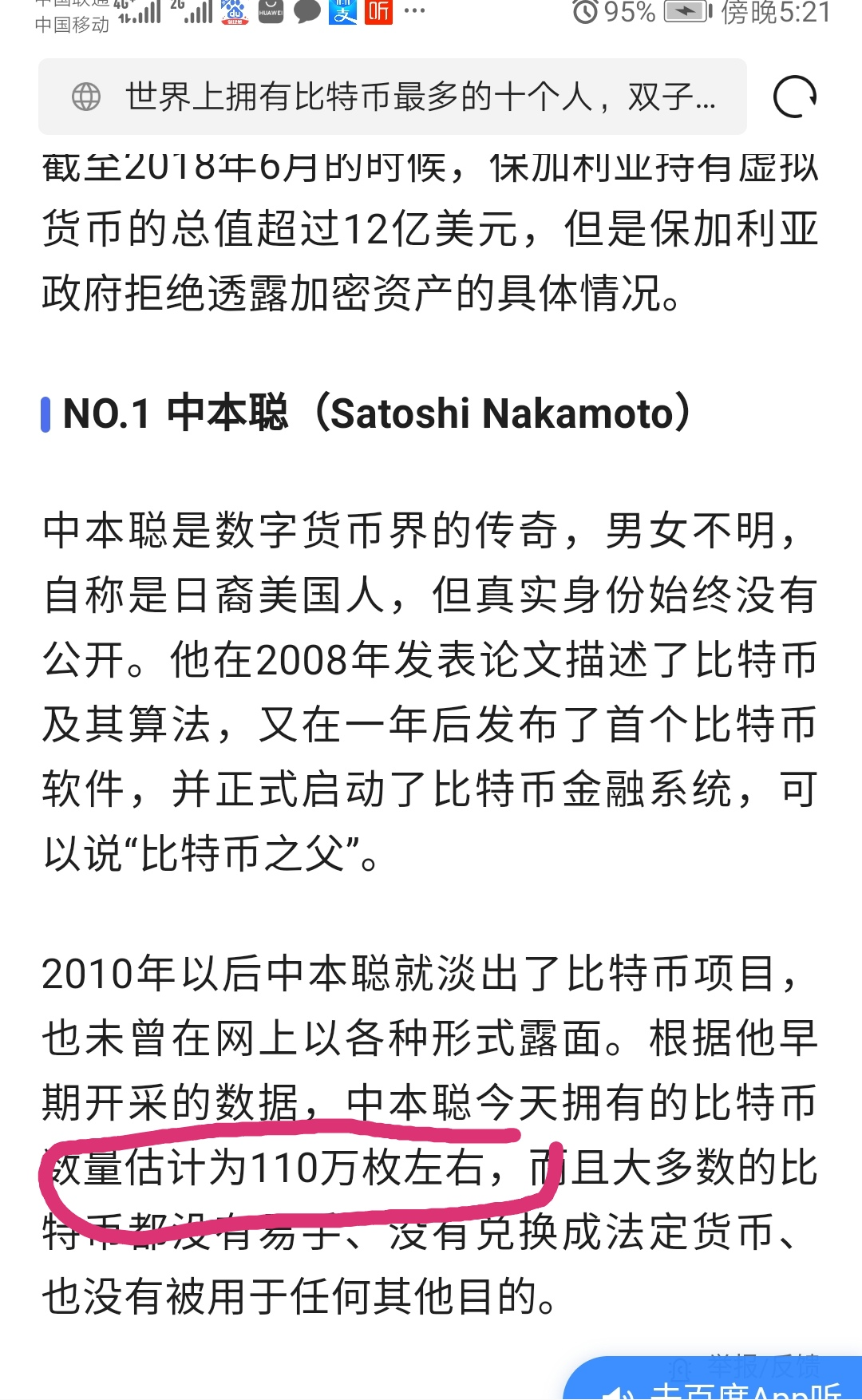 我们先说第一人中本聪的数量,110万个比特币,按照10月21日比特币价格12189计算,那么中本聪比特币财富大约是134亿左右。