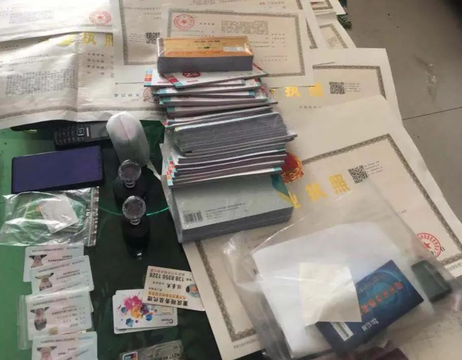 缴获的部分空壳公司法定代表人身份证及营业执照