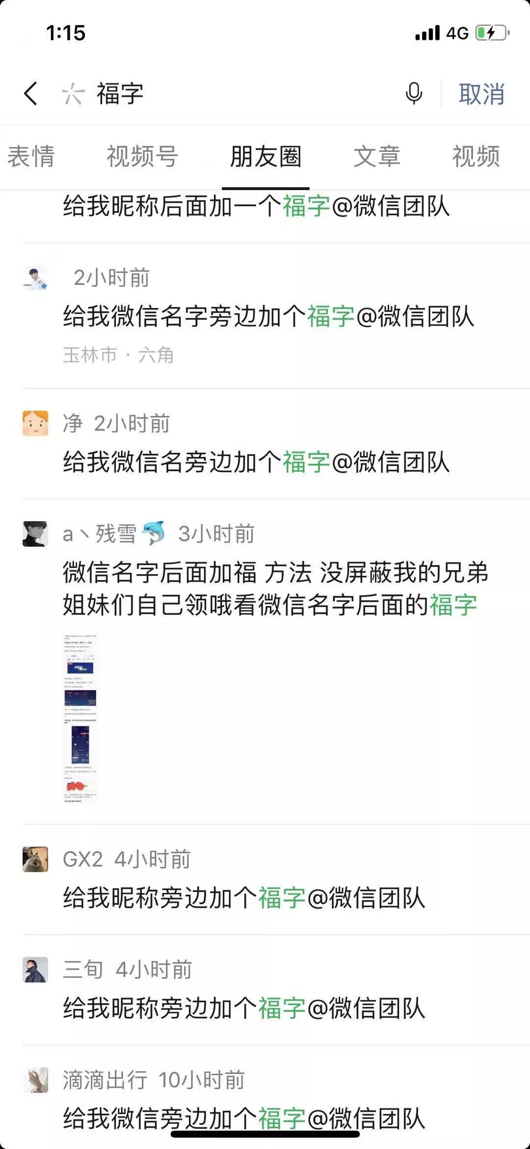 一大早刷朋友圈就看到很多人在@微信团队,让给昵称后面加个福字
