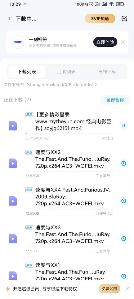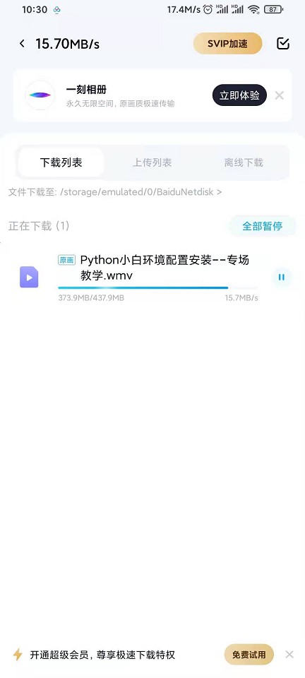 这下,百度网盘作为老大坐不住了,开始为免费用户提速了,小编得知消息后立马去测试了一下!