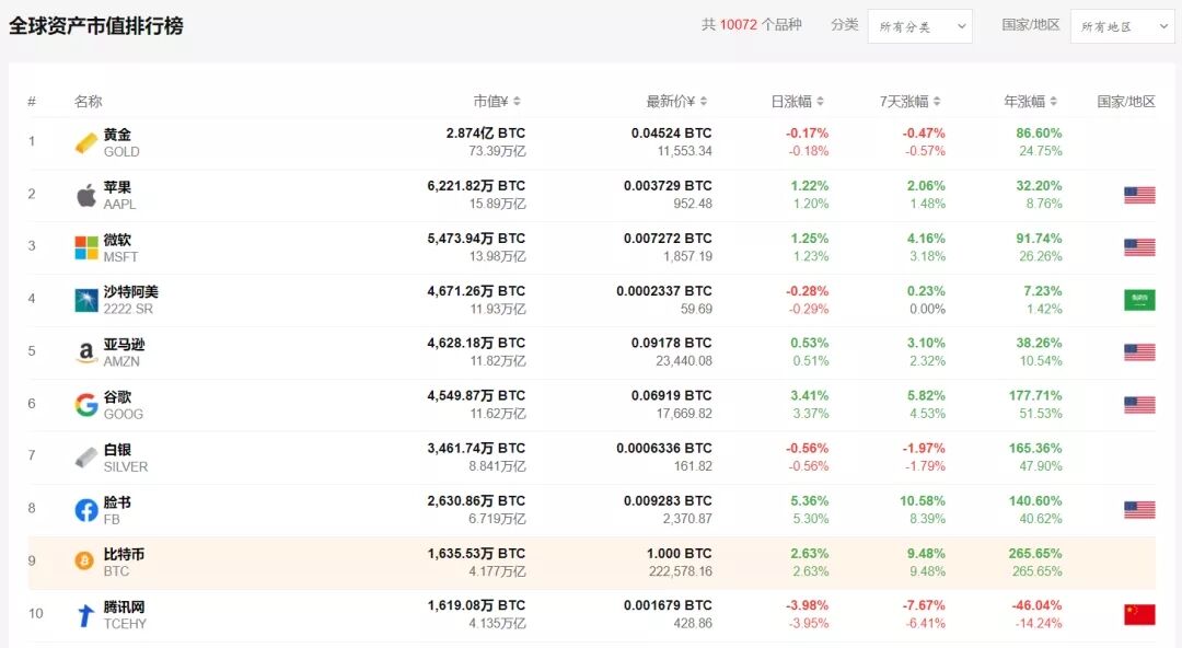 数据显示,截至7月30日,比特币排全球资产市值第9名,其市值约为4.177万亿人民币。以太坊在全球资产市值中排名第47(排名最高时曾升至全球资产第14位),现在其市值为1.629万亿人民币,虽然不到比特币市值的一半,但在加密资产领域中以太坊流通总市值高仅次于比特币。